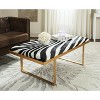 Transform your space with the millie loft bench featuring a striking zebra and gold design. This piece is more than just furniture; it is an accent that defines your interior aesthetics. The blend of iron and fabric offers not only a chic appearance but also a sturdy construct. The zebra pattern adds a bold statement, while the gold finish brings a touch of elegance and glamour. Ideal for any room, this bench effortlessly complements both modern and classic themes. Whether placed in the living room, bedroom, or hallway, the millie loft bench is versatile and stylish. Add a unique flair to your decor and let this bench be the focal point of your home.