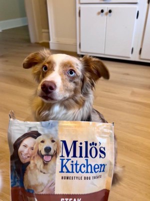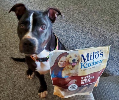 My dog LOVES all Milo's kitchen recipes and treats. Even though they are a bit pricier, I can tell I am getting quality snacks that are made with REAL ingredients! The smell says it all. My dog is always so happy to be given these treats.