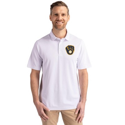 Milwaukee Brewers Cutter & Buck Advantage Eco Tri-Blend Pique Mens Long Sleeve Polo - White - Small - 1 of 1