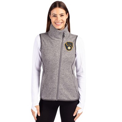 Milwaukee Brewers Cutter & Buck Mainsail Sweater Knit Womens Full Zip Vest - Charcoal Heather - Small