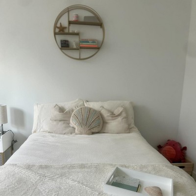 This pillow is the cutest! My daughter has a beach theme in her room and it goes so well! It goes perfect with the neutral bed linens and the design has a hint of color that give a perfect touch!