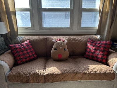 This is an adorable set of pillows. The quality is good and the reindeer pillow is loved, especially by the kids. The trio of pillows looks good on any couch I put them on. Makes for a great gift too!