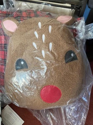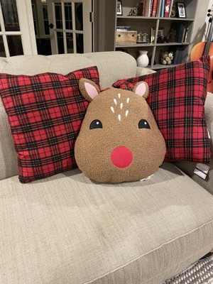 Cute, cozy, and full of cheer! This 3-piece set of Mina Victory decorative throw pillows instantly transforms your sofa into a beacon of holiday fun. The set includes two 18” x 18” plaid pillows in red and one reindeer-shaped pillow complete with matching plaid antlers. The red pillows are also reversible to the solid fleece back, giving you two looks in one! Each throw pillow is made from 100% polyester with inserts included. Square pillows include a hidden zipper closure; shaped pillow is sewn shut.
