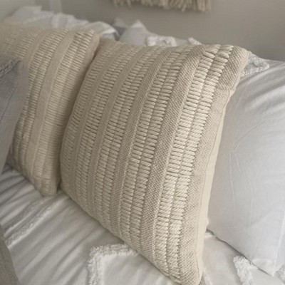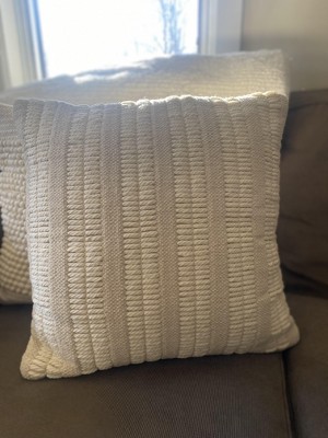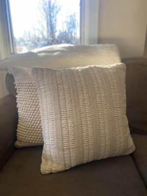 Create a relaxed vibe in your living room or bedroom with this textured throw pillow from Mina Victory Home Accents. The front cover features a woven stripe pattern that imparts a coastal feel, which is presented in neutral ivory for easy decorating. This handmade throw pillow includes a zipper closure and removable polyester insert for easy spot cleaning.