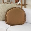 Add a breezy, dimensional look to your favorite seating area with this round throw pillow from Mina Victory Home Accents. The outer cover has a simple linen texture, which is surrounded by short brush fringe that brings a relaxed vibe to a sofa or chair. Handmade from cotton and linen; polyester insert included. 20” diameter.