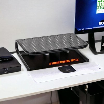 Mind Reader Monitor Stand, Ventilated Laptop Riser, Desktop Organizer, Metal, 14.5"L x 11.25"W x 4.25"H, Set of 2, Black