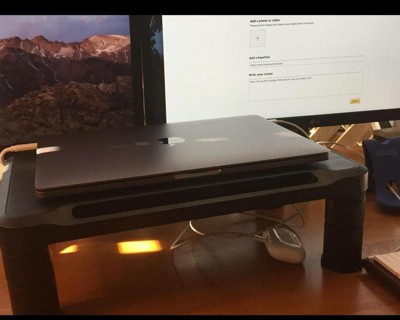 [This review was collected as part of a promotion.] This product has been the most god send product I ever gotten. I just started a new job and my neck was suffering. I used this and my problem has been solved. My monitors stand tall. I love that it's adjustable as it has removable feet and you can adjust it to your preference. This has been hands down the most useful set I got. In love with the product and I definitely recommend it.