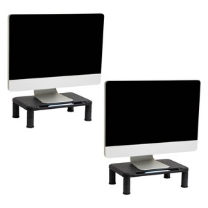 Double your comfort and organization with the Mind Reader Adjustable Monitor Stand Riser Set of 2. Designed to improve posture, maximize desk space, and enhance screen viewing, these risers elevate your monitor, laptop, or printer while keeping supplies organized underneath. Each stand adjusts in height from 2.25" to 4.25" to meet your ergonomic needs and supports up to 50 lb (22.5 kg). Crafted from lightweight yet durable materials with non-slip rubber feet and a built-in pen well, these stands are ideal for home offices, college dorms, or professional setups. When not in use, their slim design makes them easy to store or transport, offering the perfect blend of functionality and portability.