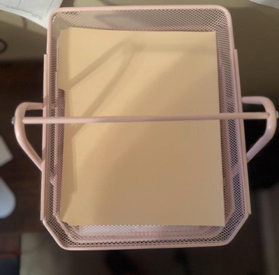 Mind Reader 4-Tier Paper Tray Desktop Organizer Metal Mesh Pink