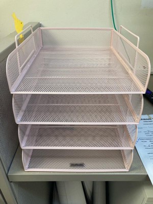 [This review was collected as part of a promotion.] The Mind Reader stackable paper tray and desk organizer is my new favorite office item. It is simple to put together, made of sturdy covered metal and looks so nice on my desk. My prior tray organizer was plastic and had cracks all over it. This material will last a long time and still look great. It cleared up the messy parts of my desk and keeps everything looking neat. I love the pink for my home office. I even purchased a black one for my desk in the office. Everyone at work wants one.
