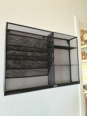 Mind Reader 4-Tier Vertical File Storage and Shelves, Desktop Organizer, Wall Mount, Office, Metal Mesh, 22.5"L x 4"W x 16"H, Black