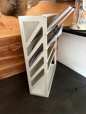 [This review was collected as part of a promotion.] I really enjoyed this slim file organizer for my desk area. The papers and folder sit so smoothly in it. I really like how it also came with an option to hang on the wall, so versatile!