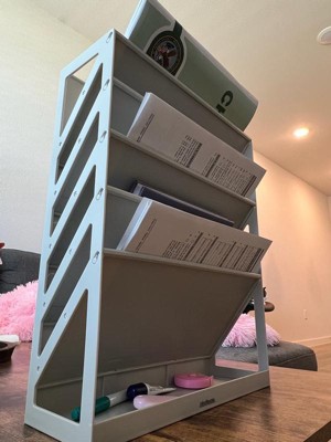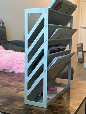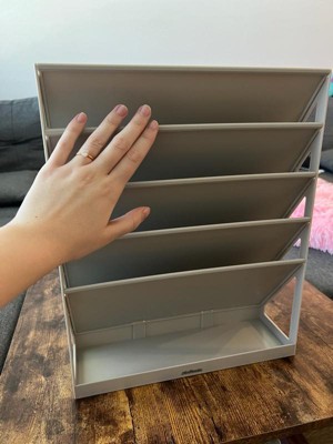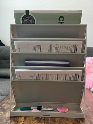 [This review was collected as part of a promotion.] I love the Mind Reader 5-tier Vertical File Storage Desktop Organizer! It is the perfect size for my desk and it has helped me so much with organizing my things around my desk and freeing up space! I really love this product and the color is so cute as well!