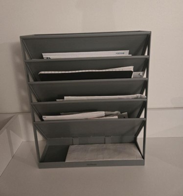 [This review was collected as part of a promotion.] I received the Mind Reader 5-Tier Vertical File Storage Desktop Organizer. This has plenty of space for everything from large documents to important mail. I like that its versatile and can be hung or left standing depending on the area I want to place it in, so its perfect for anyone who's constantly rearranging their space. It's a plastic material and It's not heavy at all but seems to be very sturdy. This makes organization a lot easier for me, and I'm glad I have everything in one spot.