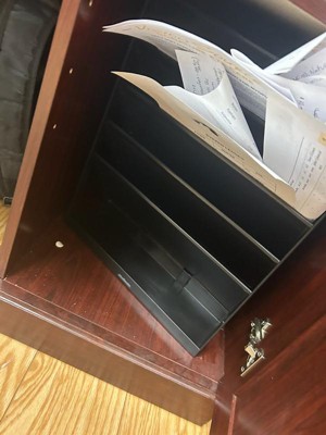 [This review was collected as part of a promotion.] The Mind Reader vertical file organizer might be my new favorite office accessory. If you aren't very handy like me, you will love the fact that there is nothing to build. The organizer comes ready to use right out of the box. I really love the fact that I can use it in 2 ways; both as a desk organizer or I can hang it. I also like that it holds a large number of files and paper in a compact package. The only complaint I have is that, the last tray on the top isn't deep enough. Despite this, the product is a solid 4.5/5 and I highly recommend it.