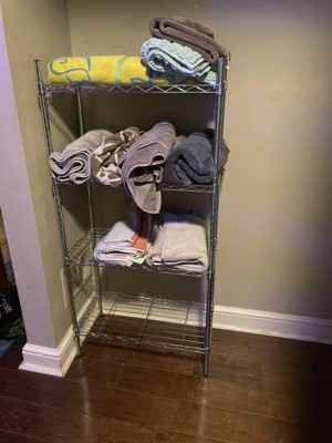 [This review was collected as part of a promotion.] This 4 shelve storage rack is well made and sturdy. It was simple to assemble and took about 30 minutes total to complete. Once together the shelving unit has been sturdy and maintained its quality. I love that it has four shelves and can fit in smaller spaces. I use mine to hold towels but it could also be used for storage in many other areas of the home. It is sleek and simple and is well made and durable.