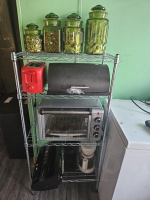 [This review was collected as part of a promotion.] I have a tiny home and this shelf fit perfectly where I needed it. The shelf holds my appliances and keeps them off my countertop. It is very sturdy as well