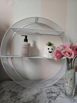 - Stylish Round Wall Shelves: This round wall shelf features a metal mesh frame with two shelves. It's perfect for displaying books, photo frames, or decorative items. Equipped with round metal eyelets for secure wall mounting
