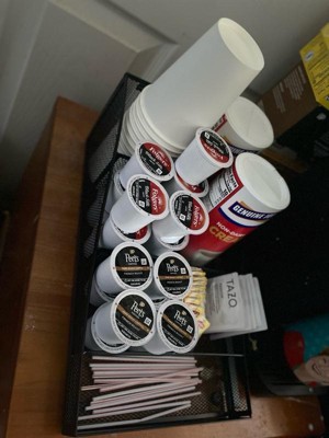 - Customizable and lightweight yet sturdy: Arrange single-serve coffee pods or utilize larger compartments for creamer, cups, and lids with ease