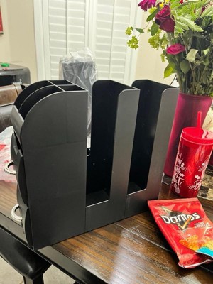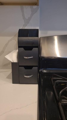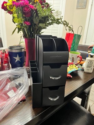 [This review was collected as part of a promotion.] Okay, I'm obsessed with this! My husband is a huge coffee fanatic and his cups, stir straws and sugars takes up way too much took on my counter! I put his cups/lids, creamers sugars and everything else in this and it saves me so much room. I have it beside his Keurig and he has everything in one spot so he isn't searching or making a mess of everything.