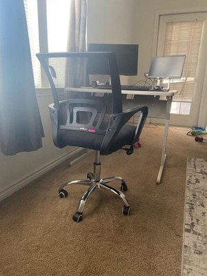 [This review was collected as part of a promotion.] I use this chair at my vanity. It’s super comfortable. I do wish it had a little more padding but it is way more comfortable than my wood chair I had previously. I use this at my vanity to do my makeup, hair, nails and the occasional paperwork. It’s got a lot of support and I love that it has different height adjustment as well. It doesn’t work the best on soft carpet but it still works. I think having a mat under would make it work easier to roll but it does still roll just needs a little more push. Definitely a great chair if you at looking at a super affordable office chair! It was fairly easy to put together as well.