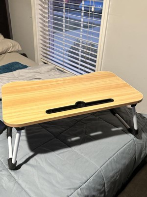 [This review was collected as part of a promotion.] This is exactly what I’ve been needing! I do online schooling and online meetings and I don’t always want to sit at a table. This is perfect for me to sit on the bed or couch and be comfortable. It’s a great height to write on and still be comfortable. I like that it’s got a slot at the top for items, too. It’s perfect!