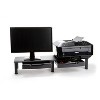 Beneath the stand, stash office essentials like pens and notepads, maintaining a tidy workspace. Anti-slip rubber grips secure the stand and safeguard your desk from scratches. Holding up to 40lb (18kg), it's durable and easy to clean with mild soap and water. Lightweight and portable, it's suitable for home or office use, doubling as a shelf for TVs or home theater systems.