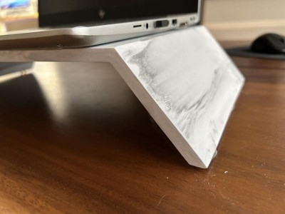 [This review was collected as part of a promotion.] This stand is really cute and a great size to support my desktop and store my laptop underneath. The material is raw, matte, very scratchy and gets dirty very easily. The overall looks and design is nice; not to mention it is very sturdy. I just wish there was some kind of protective coating on it.
