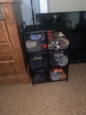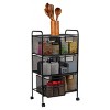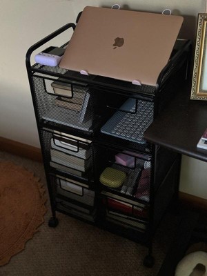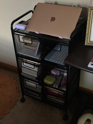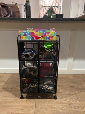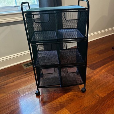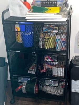 The see-through mesh design of this vertical storage solution makes it easy to locate and organize multiple items. With its seamless black color, the cart also serves as a stylish home décor element. Ideal for any home or office, our storage cart makes a thoughtful gift for graduations, housewarming parties, holidays, and other special occasions.