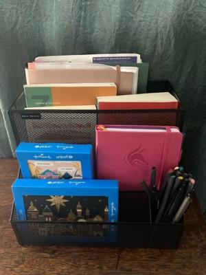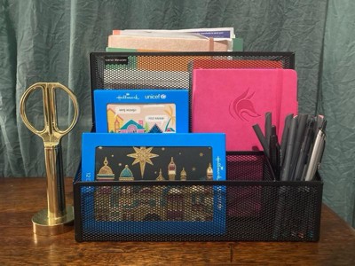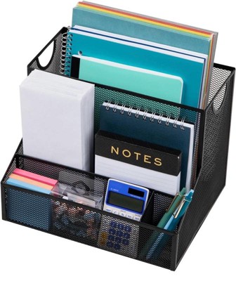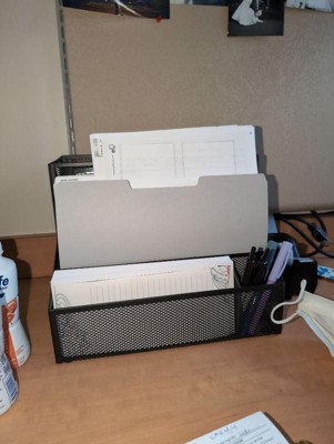 [This review was collected as part of a promotion.] I placed this desktop organizer on my counter to help keep mail and other office items like pens, lists and notepads organized and separated. I love that each section is large and can fit a variety of different items. It is mesh so you have to be careful of any potential bending. The mesh is very thin and flexible. Overall, I like this storage organizer and love that my counter space is more organized because of it.