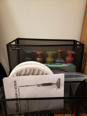 [This review was collected as part of a promotion.] I received this product free for review. This product came slightly bent up which can be seen by the before picture. My first thought was this product is too big to fit my desk, so I used it to store all my extra soap and cleaning supplies. I could have put it on my desk, but since I use my laptop and a second screen, I think it would block up the space needed. For cleaning supplies though, it was perfect.
