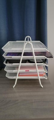 [This review was collected as part of a promotion.] five tier paper tray, desktop organizer, file, storage workspace office, metal mesh works great. It looks nice on the desk and it’s really nice that the trays are removable so that you could take your trays of paper with you. wasn’t difficult to put together.