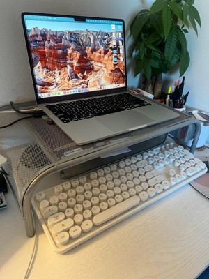 [This review was collected as part of a promotion.] This laptop riser is a game-changer for anyone looking to enhance their workspace ergonomics while adding a touch of personal style. It elevates your laptop to eye level, which is crucial for maintaining good posture and reducing strain on your neck and shoulders. The metal mesh design promotes air circulation around your laptop, significantly reducing the risk of overheating. I love that it's elevated design promotes air circulation around your laptop, significantly reducing the risk of overheating. It's an excellent investment for anyone looking to improve their workspace ergonomics and aesthetics.