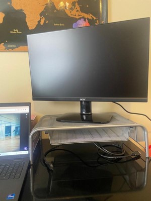 [This review was collected as part of a promotion.] This monitor stand works great. It’s able to raise my monitor and offers storage space below to hold documents. The drawer slides well and the functionality of it is great!