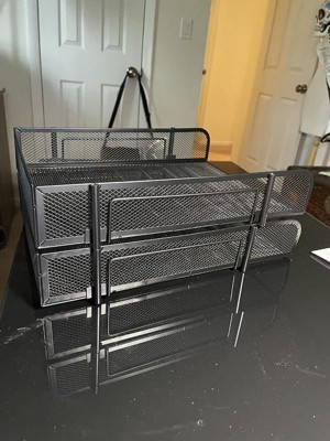 [This review was collected as part of a promotion.] This is a handy tray system that’s helping me corral loose papers and items on my desktop. It holds quite a lot - I’ve got a stack of papers and a big planner on the bottom with plenty of room left, and the top holds just as much. It’s sturdy and doesn’t fall apart when it gets knocked by my clumsy self.
