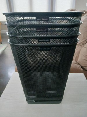 [This review was collected as part of a promotion.] These waste baskets are made very well and seem to be excellent quality. I will say they are a tiny bit smaller than what I would like, but they serve their purpose. The black mesh keeps our office looking sleek and clean.