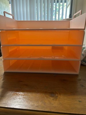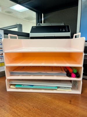 [This review was collected as part of a promotion.] Great organizer paper tray! Made of a sturdy pink plastic, with a great sleek design. Fits perfectly on my desk and looks so pretty. Fantastic addition to my desk!