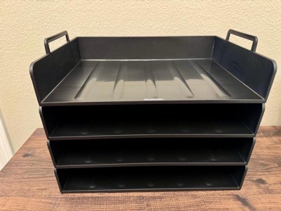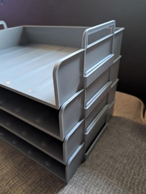 [This review was collected as part of a promotion.] This is a great stackable tray to use. It has four trays you can stack or keep separate. It holds and organizes paper, folder, or whatever you'd like.its durable and stays in place. Great for any household or workplace.