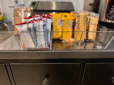 - This snack organizer blends in with any decor and has a low-profile perimeter that will sit securely on any kitchen countertop, island, or snack cart