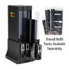 Refilling the utensils is as simple as pressing the red button on the left-hand side of the organizer, which releases the compartment for easy access. Despite its 24-inch height, the dispenser remains steady on your counter, thanks to its 10.25 by 10.75-inch wider base that tapers towards the top.