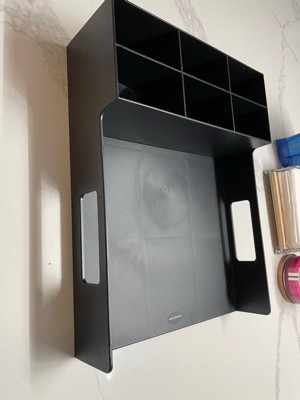 - Compact dimensions: Measuring 11.25 long x 15.25 wide x 4.5 inches tall (28.58 x 38.74 x 11.43 cm), this organizer saves countertop space by providing vertical storage for your essentials