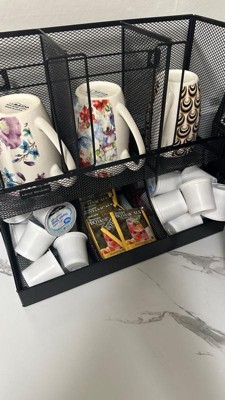 - Versatile storage solution: This cup and condiment organizer is perfect for storing cups, lids, and coffee/tea accessories, but can also be used for organizing other condiments or office supplies