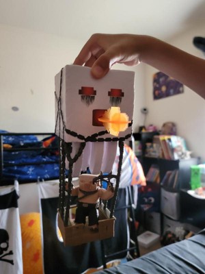 [This review was collected as part of a promotion.] My kids really enjoyed getting this toy. It measures about 10 inch tall, and you can put in the pig in the basket. The orange flame gets inserted into the balloon’s “mouth” and there’s a button on top that you press and it’ll “spit it out” flying. Once you push that button this also makes like a wind type of noise, mimicking like a hot air balloon ride going through the wind. Overall, this was a really fun toy and wonderful addition for those Minecraft fans. My kids lost the little black bow that came with the pig, but that doesn’t affect anything within the toy or performance. I would purchase this if I was looking for a Minecraft toy.