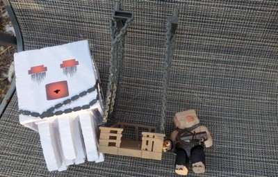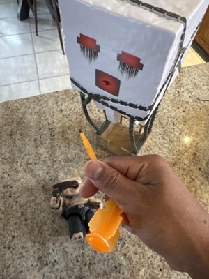 [This review was collected as part of a promotion.] My 10 year old is a big Minecraft fan and was superexcited about this Blast Attack Ghast. The "hot air balloon" look to it it is cool and launches plastic flames, which is fun. The detail on the pig warrior is amazing and makes us all very excited for the movie!!