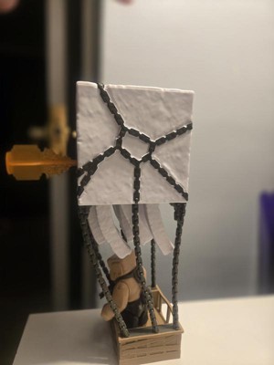 [This review was collected as part of a promotion.] This toy, although it was fun to look at, was attractive and caught my son’s attention, was bit frustrating to use. The pig character was too heavy at the head, so the character couldn’t stand without falling over. It also did not fit well or stand well within the hot air balloon basket. I would recommend opening the hands more so they could grab the chains inside the hot air balloon or making the basket taller to prevent the pig from falling out. The hot air balloon itself was also a bit heavy, making the plastic ropes bend after a few days of it being out of the box. On the first day of play, the fire bullet broke inside the hole where you insert it. We couldn’t get the other end out, so now it cannot be used. The sound effects were fun and even a bit spooky as we weren’t expecting those sounds. The arrow was simple and easy to use.