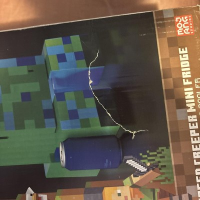 Purchased back in November for my son’s birthday.. After him having this more many months I can say the fridge is awesome! We ended up getting his little brother the TNT mini fridge and together they look so awesome! The lights on this Charged Creeper are green and blue on the backside but it’s always lit up green inside. Doors are hard to keep shut, but it really isn’t a big deal because I always go behind the boys to make sure they’re shut. As long as we stay in the “mini” drink variety options their fridges stay stocked because the room is actually pretty okay (I mean, these are for kids) and it makes my boys feel special to have their own fridges in their loft bed hangout spots. Overall I’m happy, even though it was $100+ plus tax on a whim because we saw it inside of the store I definitely would buy it again if this one were damaged in any way.