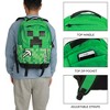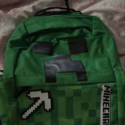 Show off your Minecraft fandom with this green backpack, designed to look like a creeper and featuring an embroidered pickax on the front. Perfect for everyday use, the bag includes adjustable shoulder straps, a front zipper pocket, a front flap pocket, and an interior laptop sleeve to keep your items organized. Made with durable poly materials, this backpack is practical and stylish. For effortless care, simply wipe it clean to keep it looking fresh.