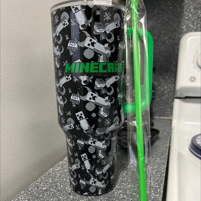 CUSTOM DESIGN: Power up your hydration with this 40 oz Minecraft tumbler featuring bold Creeper and TNT graphics on a sleek black finish. Perfect for fans who love gaming style mixed with everyday function.