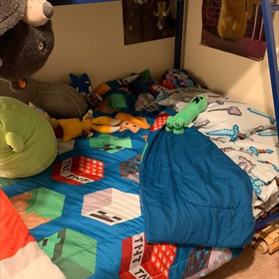 Minecraft Full Isometric Kids' Bedding Set Blue: Comforter & Sheets, Polyester, Microfiber, Favorite Character Theme