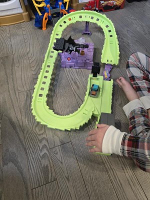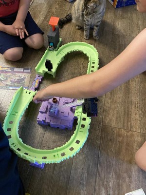 [This review was collected as part of a promotion.] This is one of our favorite toys right now! We opened the package, my 4-year old helped assemble and he has been playing with it for the last hour straight. Very easy to put together and so fun to play with! Even my husband was taking a turn! Assembly - the track pieces are loose in the box and snap together with ease. They are labeled with a letter on top or on bottom to follow along with the directions. Batteries were included, so we were able to start playing right away! The only thing we’ve found so far is the purple piece with the Hot Wheels sticker doesn’t always stay in place, but that could be because our carpet is thick. We weren’t really into Minecraft yet, but now my son is asking for more Minecraft toys! This is a HUGE hit in our house and fun for our entire family to enjoy.